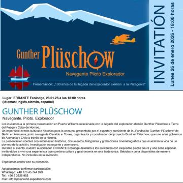Präsentation über den deutschen Entdecker, Seefahrer und Piloten Gunther Plüschow in Puerto Williams, Chile.