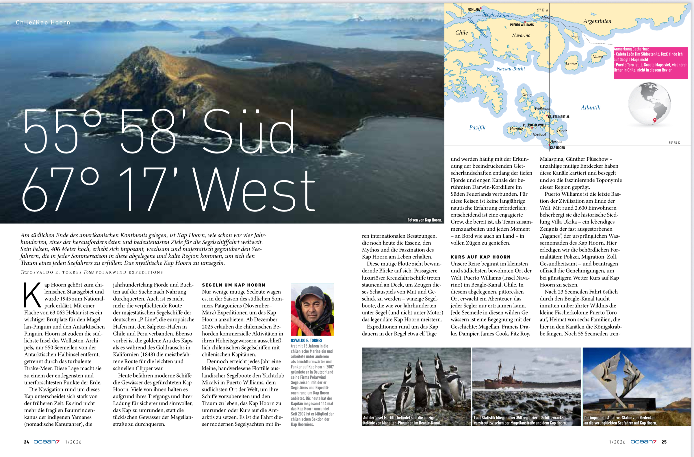 Erneut hat das österreichische Magazin Ocean7 einen interessanten Artikel über unsere Expeditionen in der Region Kap Hoorn und Feuerland in Chile veröffentlicht.